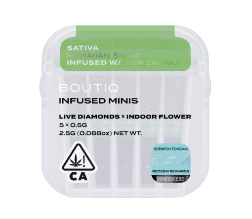 Escape to a paradise island where Hawaiian Snow’s cool, minty freshness meets the lush, juicy sweetness of Tropical Haze. This sativa duo envelops you in waves of euphoria and vibrant energy, perfect for daydreaming or embarking on an outdoor adventure.
